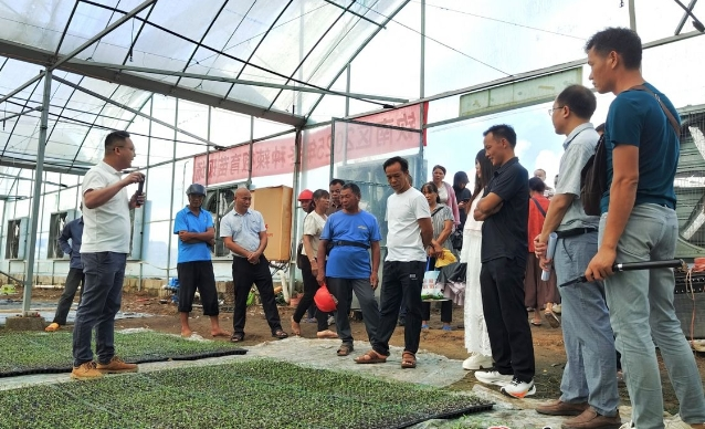 图为广西桂辣农业科技有限公司梁兰成总经理现场讲解辣椒育苗技术